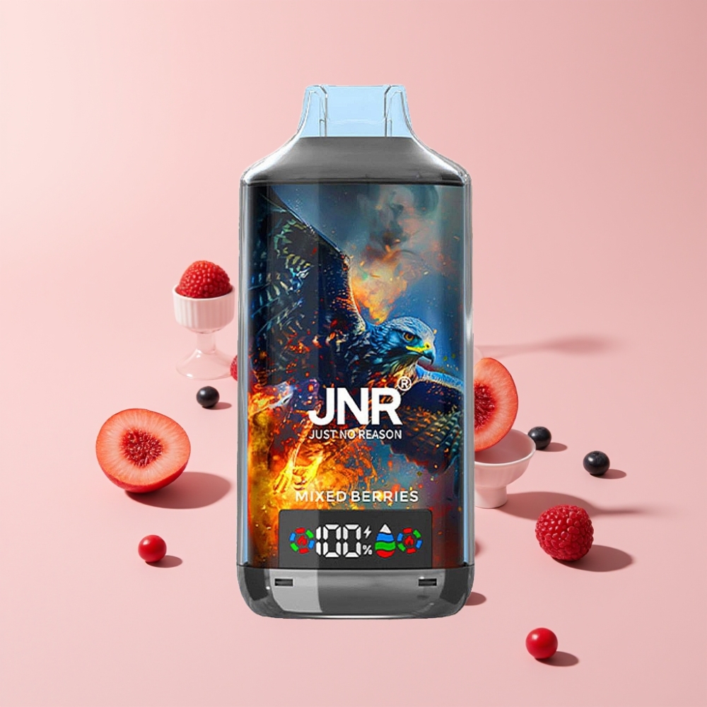 JNR Falcon X 18000 Puffs 750mAh 24ml Kaksoisverkkokäämi Diginäyttö Type-C Sekamarjat