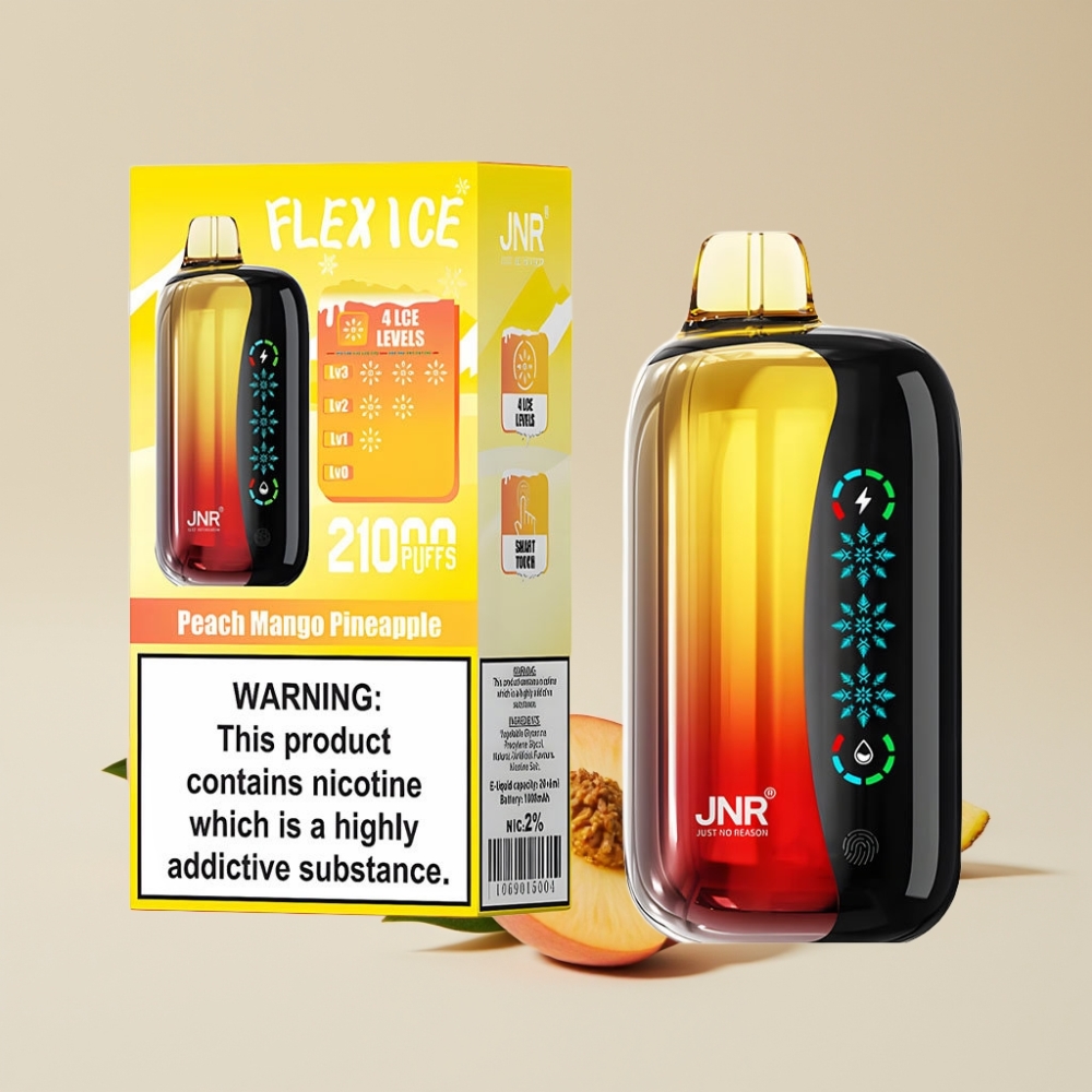JNR Flex Ice 21000 Puffs 26ml 1.2 Ohm Dual Mesh Kosketusnäyttö Persikka Mango Ananas