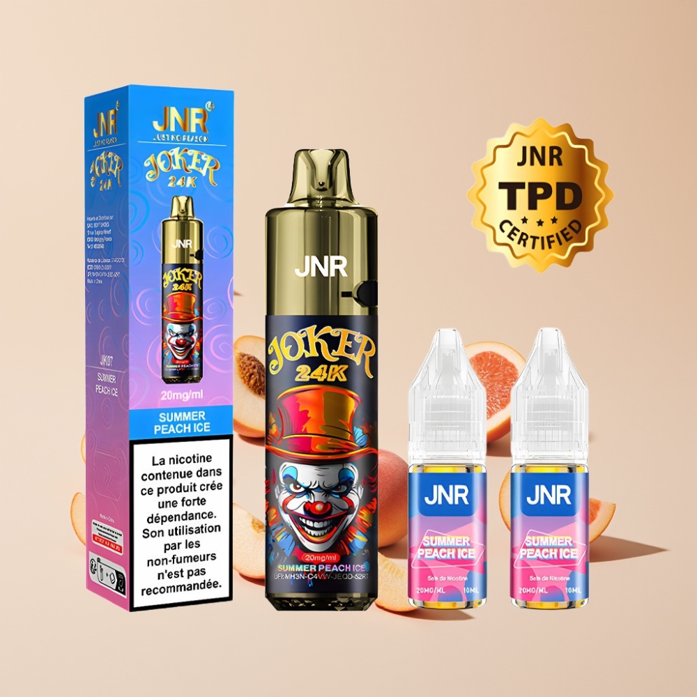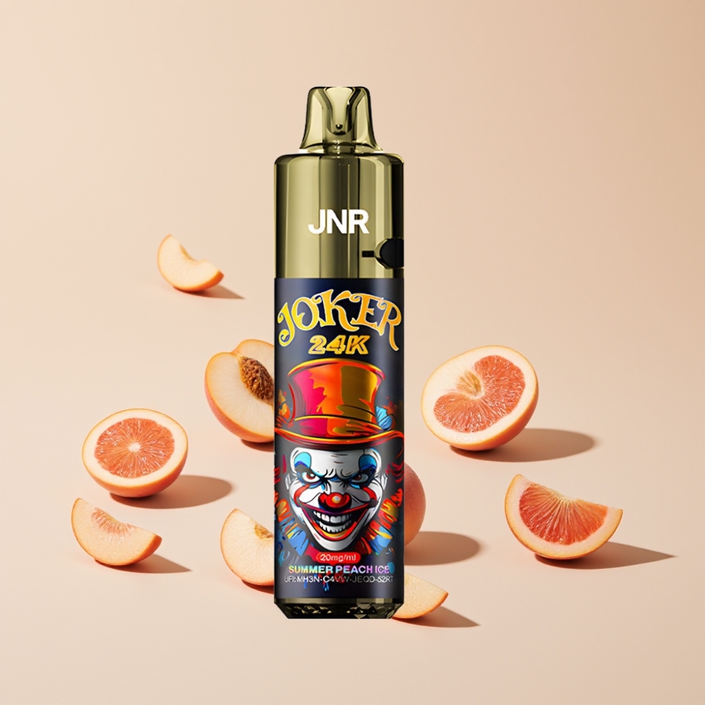 JNR Joker 24K Puffs Disposable Vape Kesäpersikka-Jää (2+10ml, 800mAh, 2% nikotiinia)