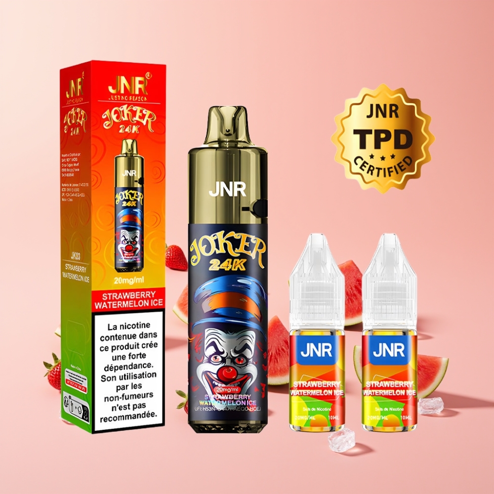 JNR Joker 24K Puffs Disposable Vape Mansikka-Arbuusi-Jää 2+10ml Täyttömahdollisuus 800mAh Akku