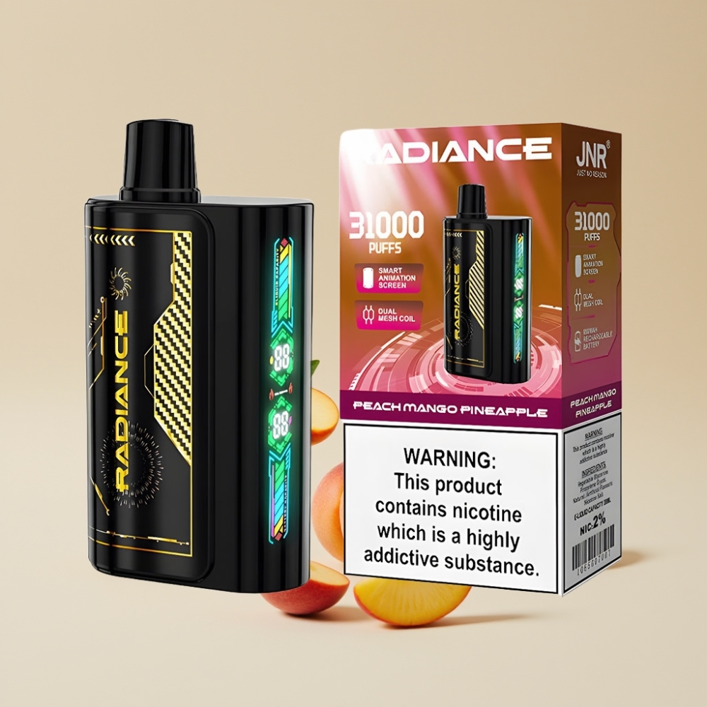 JNR Radiance 31000 Puffs 28ml Dual Mesh 950mAh Type-C 2% Nikotiini PERSIKKA MANGO ANANAS